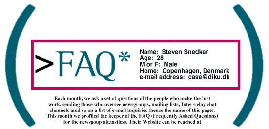 My connection to the group is as a contributor, FAQ-maintainer, archive-keeper, historian. And being the