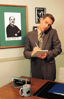 ST: Well, one of the advantages is that no one tells me what to do. There's no middle man. If I want to write a monologue or write a piece and then just put it onto my site for people to download, they get it. I think one of the advantages is that there's no censorship in my site, I can say whatever the fuck I want. I can kind of create a dialogue between characters that I've never really been able to. And one of the things that I've done on the site is an election we have going on... IU: I saw that. I've spent some time on the site, and I'm actually registered as a citizen, so... ST: Oh, you are! Did you listen to the debate? Because that's the coolest thing that we've done so far. I wrote this debate between the four characters that was 21 minutes long -- basically like a half-hour show -- and CBC radio let us use their technology for people to download it in real time. We recorded it on a DAT machine in my brother's house. I did all the characters with my friend Alain playing the moderator. But only 200 to 300 people have actually heard it, so it's sort of like I've done the show in a little club. Which is kind of exciting, I like that. But I don't know where it's going to go. What I want is someone to sponsor me, like an interactive company, or DreamWorks, or Maverick. Just to (have them) sponsor it as an experiment in entertainment IU: Why did you decide to do it in this style? Why create this world, with citizens, and the whole Scottland motif?