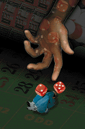 up and running for Japanese bettors. Will savvy gamblers want to bet with men like Eugene, whose site includes a winking picture of a monkey -- a joke portrait of him that people can click on to send him e-mail at bigkahuna@casino.org? The jury is still out. He is unquestionably a showman, but bristles at questions of his legitimacy, despite having been quoted referring to himself as "the Bugsy Siegel of the Internet." "I have seen hundreds of prospectuses across my desk for Internet gaming operations," says wagering expert Christiansen, who points out that the large established casino companies have avoided the Internet out of concern about jeopardizing their gaming licenses. "This may really move forward, and if we come back five years from now, two or three of these little guys may have figured out a model that works, and established consumer credibility," he predicts. Reformed gambler Wexler is praying Christiansen is wrong. As someone who knows the pitfalls of gambling in any forum, his advice is straightforward: "I think the safest thing you can do is just avoid these guys."